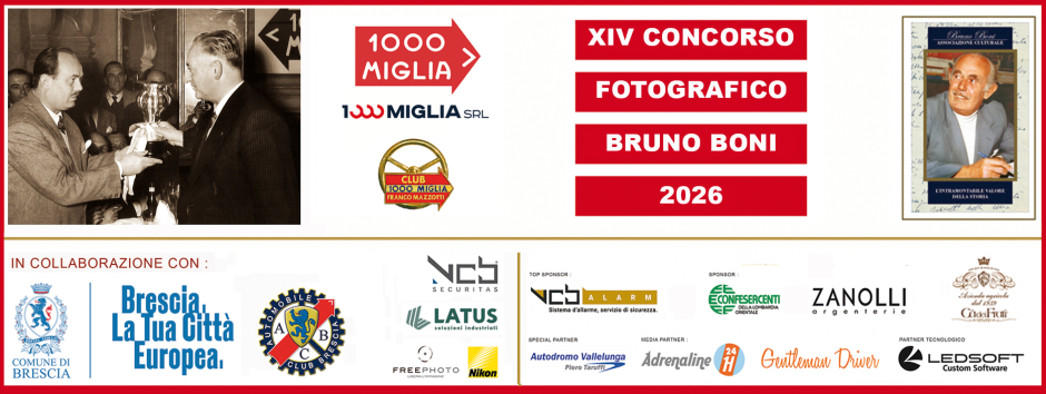 Per il dodicesimo anno consecutivo l’Associazione Bruno Boni organizza il tradizionale Concorso fotografico in digitale legato alla 1000 Miglia, in collaborazione con 1000 Miglia Srl e il Club Mille Miglia Franco Mazzotti, con il patrocinio del Comune di Brescia, di ACI Brescia e del Museo Mille Miglia.
