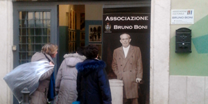 "Introduciamo questa nostra comunicazione con un passo di una lettera d’auguri di Bruno Boni ricevuta nel Natale del 1986; una delle migliaia di lettere che, come ben saprete, il Professore amava inviare a suoi illustri concittadini, ad amici o semplici conoscenti. Come recentemente riportato dalla Stampa l’associazione ha ottenuto dal Comune, a condizioni di favore, una sede al Carmine che ha bisogno di essere sistemata, arredata e resa funzionante. L’allegato pieghevole ha lo scopo di meglio illustrare i nostri progetti. Questa quindi l’occasione per sollecitare il vostro personale interessamento nei confronti dell’iniziativa, se possibile con un aiuto economico, renderci disponibili a partecipare ad eventuali manifestazioni di carattere sociale da voi organizzate, trovare un modo per far conoscere ai vostri amici la nostra iniziativa e approfondire la reciproca conoscenza. Certo del vostro interessamento, anche a nome dei consiglieri Roberto Boni e Giuseppe Promenzio, Vi auguro un felice anno nuovo. Franco Lucini"